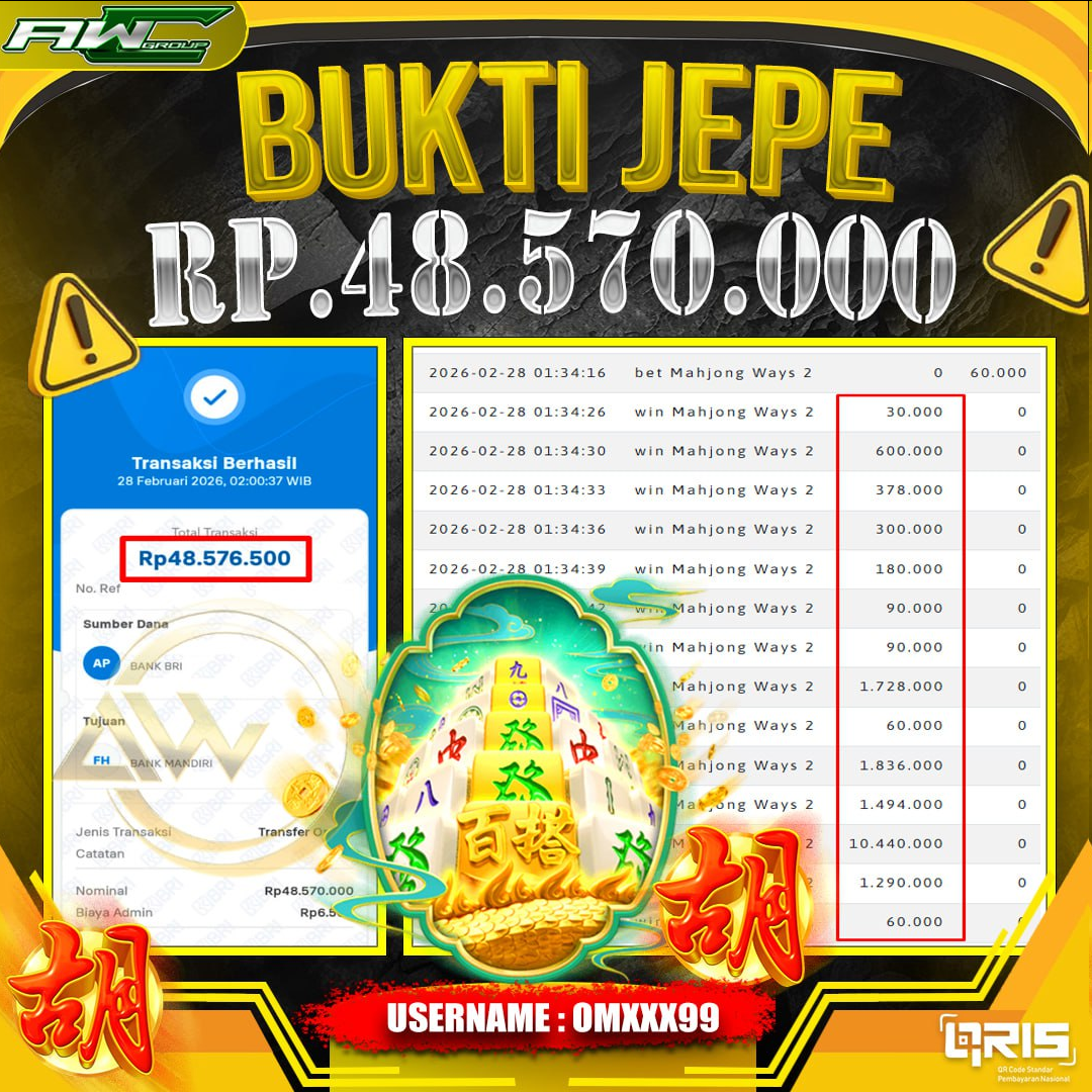 ID : OMXXX99 JACKPOT PAUS DI SLOT PG SOFT NAMA GAME : MAHJONG WAYS TOTAL WITHDRAW : 48.570.000