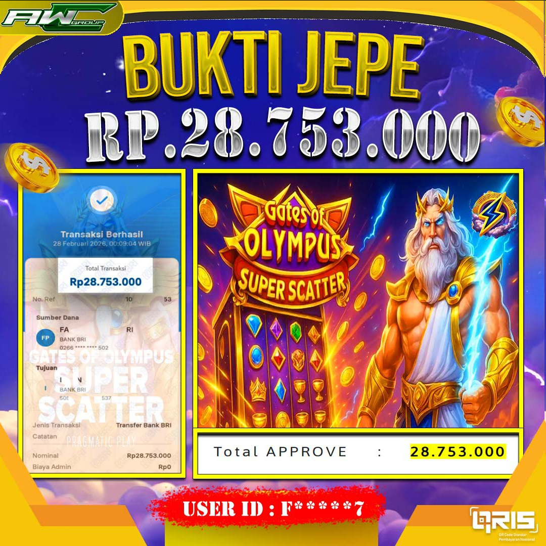 ID : F****27 JACKPOT PAUS DI SLOT PRAGMATIC PLAY NAMA GAME : GATES OF OLYMPUS SUPER SCATTER TOTAL WITHDRAW : 28.753.000